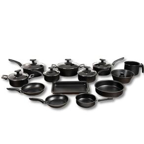 Composição do conjunto: a numeração é referente ao tamanho da boca das panelas, confira as medidas em litros nas fotos do anuncio 1 panela 14cm 1 panela 16cm 1 panela 18cm 1 panela 20cm 1 caçarola 16cm 1 caçarola 20cm 1 fervedor 14cm 1 frigideira 14cm 1 frigideira 16cm 1 frigideira 18cm 1 forma redonda 22cm 1 forma de pudim e bolo 20cm 1 forma retangular As formas podem variar de acordo com a disponibilidade do Leve a sua cozinha a um novo nível de excelência culinária com o conjunto de panelas imperial teflon antiaderente com tampa de vidro. Composto por um conjunto abrangente de panelas de alta qualidade, este conjunto irá elevar as suas habilidades culinárias e facilitar a sua rotina na cozinha. Cada peça deste conjunto foi cuidadosamente projetada para fornecer resultados excepcionais e durabilidade em longo prazo. O revestimento antiaderente em teflon garante que os alimentos não grudem, permitindo que você cozinhe com facilidade e evite a necessidade de usar grandes quantidades de óleo ou gordura. Além disso, nossas panelas possuem tampa de vidro, permitindo que você acompanhe o processo de cozimento sem perder o calor ou o vapor essencial para a preparação dos alimentos. São tampas de vidro temperadas, inquebráveis, visando sua segurança e de sua família. A qualidade e a segurança são garantidas com o selo de qualidade inmetro, assegurando que este conjunto de panelas atenda aos mais altos padrões de fabricação e segurança. O conjunto inclui uma variedade de tamanhos de panelas e frigideiras, desde panelas menores de 16 cm até formas maiores de 30 cm. Com essa diversidade, você terá o utensílio certo para cada tipo de preparação culinária. Não apenas adequado para o seu uso pessoal, este conjunto de panelas também é perfeito para presentear alguém especial. Seja para um cozinheiro iniciante ou um chef experiente, este conjunto de panelas é um presente prático e sofisticado que certamente será apreciado. Traga eficiência e estilo para a sua cozinha com o conjunto de panelas teflon antiaderente com tampa de vidro. Prepare refeições incríveis, economize tempo e desfrute de uma cozinha mais prática e moderna. Invista na qualidade e nos desempenhos excepcionais deste conjunto de panelas, e ele se tornará um item essencial para a sua rotina culinária. Marca: Não Informado Ean: 7898607802867