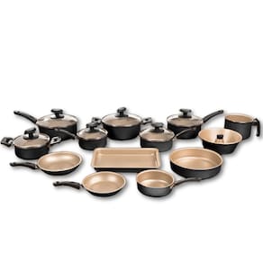 O conjunto inclui uma variedade de tamanhos de panelas e frigideiras, desde panelas menores de 16 cm até formas maiores de 30 cm. Com essa diversidade, você terá o utensílio certo para cada tipo de preparação culinária.