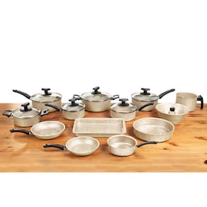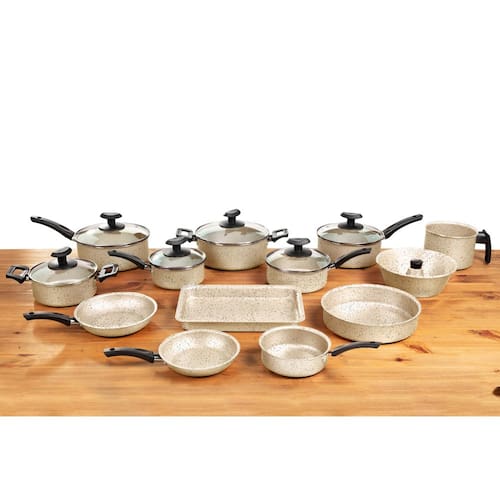 O conjunto inclui uma variedade de tamanhos de panelas e frigideiras, desde panelas menores de 16 cm até formas maiores de 30 cm. Com essa diversidade, você terá o utensílio certo para cada tipo de preparação culinária.