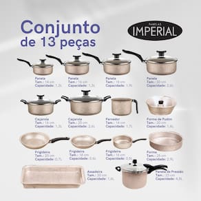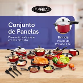 Leve a sua cozinha a um novo nível de excelência culinária com o Conjunto de Panelas Imperial® Teflon Antiaderente com Tampa de Vidro. Composto por um conjunto abrangente de panelas de alta qualidade, este conjunto irá elevar as suas habilidades culinárias e facilitar a sua rotina na cozinha.