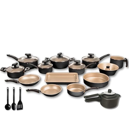 O conjunto inclui uma variedade de tamanhos de panelas e frigideiras, desde panelas menores de 16 cm até formas maiores de 30 cm. Com essa diversidade, você terá o utensílio certo para cada tipo de preparação culinária.