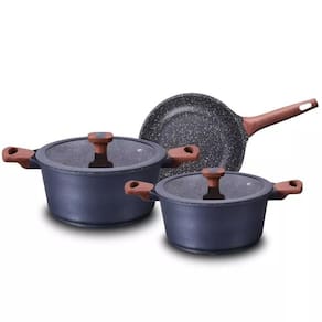 Conjunto panelas 3 peças Titanium Indução Revestimento Cerâmico Marmorizado cod. 8450 O conjunto de panelas 3 peças titanium, o seu material é de aluminio injetado de 5 mm de espessura, tampas de vidro temperado com anel de silicone com cabos em soft-Touch e também é compativél com todos os tipos de fogões. Um design diferenciado que voce só encontra com a MTA. Revestimento Cerâmico Marmorizado de alta performace. Composição 01 Caçarola com TVT Diâmetro: 24 cm Capacidade: 4,3 litros 01 Caçarola com TVT Diâmetro: 20 cm Capacidade: 2,4 litros 01 Frigideira Alta s/ tampa Diâmetro: 24 cm Capacidade: 1,9 Litros Vantagens - Aluminio injetado de 5,0 mm de espessura - Tampas de vidro temperado com anel de silicone - Cabos em soft-Touch - Compatível com todos os tipos de fogões