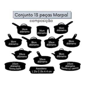 Conjunto de panelas 13 peças Comprar um conjunto de panelas é uma ótima opção para quem quer trocar os utensílios da cozinha e economizar. Tudo de forma vantajosa, você terá; praticidade, harmonização da cozinha e variedade de produtos. O conjunto possuí 13 panelas antiaderentes que facilitam o momento de cozimento, pois impede que a comida grude, e auxilia na limpeza do item também. Ideal para quem está se mudando para um local novo, indo morar sozinho ou está apenas renovando o armário de panelas, o conjunto será uma ótima escolha. Torne sua cozinha ainda mais equipada para que você possa realizar todas suas receitas preferidas. Além disso, as panelas são leves, permitindo que você leve-as onde for, incluindo reuniões entre a família ou amigos, para preparar aquela deliciosa refeição. O material de alumínio auxilia no momento de cozimento, fazendo com que a comida fique pronta rapidamente, a panela possuí também cabos de baquelite, que diminuem a chance de acidentes com queimaduras.