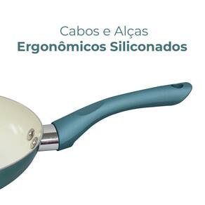 Conjunto De Panelas Antiaderente Genebra Royal 7 Peças - Casambiente Al039-R Jogo de Panelas Genebra 7 Peças Revestimento Cerâmica - CasambienteO Kit de Panelas Genebra da Casambiente possui 1,8mm de espessura em alumínio com revestimento cerâmico de ótima qualidade que ajuda a dispersar o calor, trazendo um cozimento mais rápido e uniforme aos seus alimentos.As panelas não grudam e são extremamente fáceis de limpar devido a sua classificação nível A em antiaderência do Inmetro.Possuem tampa de vidro temperado com bordas e saída para vapor em inox. Além disso, os cabos são revestidos com silicone que não esquentam, são mais confortáveis ao manusear e trazem muito mais segurança durante o preparo de suas refeições.O conjunto é composto por 7 peças na cor azul com revestimento interno creme e alças e cabos azuis.São duas caçarolas, três panelas com cabo, uma frigideira e um fervedor que facilitarão o cozimento no dia a dia. Podem ser lavados em lava louças e não podem ir ao forno, nem ao micro-ondas.O conjunto é indicado para fogão elétrico e a gás.Vantagens:- Cabos e alças siliconados.- Tampa de vidro temperado com bordas em inox.- Cozimento rápido e uniforme.- Não gruda.- Fácil de limpar.Composição 7 Peças:1 Caçarola 26cm - 5L1 Caçarola 24cm - 4,3L1 Panela 20cm - 2,4L1 Panela 18cm - 1,8L1 Panela 16cm - 1,2L1 Fervedor 14cm - 1,3L1 Frigideira 20cmRecomendações:- Lavar antes do primeiro uso, untar com óleo e aquecer antes da primeira utilização.- Usar somente utensílios de madeira, silicone ou nylon.- Utilizar fogo médio ou baixo, pois as panelas distribuem uniformemente o calor.- Não esquentar o produto vazio.- Utilizar o lado macio da esponja e evitar uso de abrasivos- Indicado para fogão a gás, elétrico e de indução.Características:Marca: CasambienteReferência:Modelo: GenebraCor: AzulEspessura: 1,8mmQuantidade: 7 peçasMaterial: Alumínio com revestimento antiaderente em cerâmicaClassificação A em antiaderência. Imagens ilustrativas.