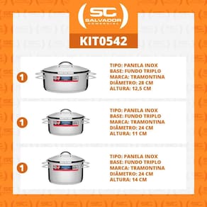 Conjunto Panelas em Aço Inox com Fundo Triplo Solar PIT 1, 2 e 3 - Tramontina