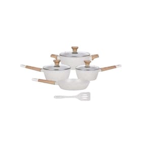 - 01 panela: 16cm - 1,2 l - 01 panela: 18cm - 1,6 l - 01 caçarola: 20cm - 2,25 l - 01 frigideira: 20cm - 1 l - 01 espátula vazada: 29,5 x 7 x 2 cm Ean: 7908216126671