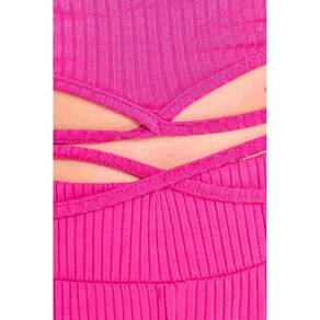 Conjunto Pantalona top em Malha Canelada, possui uma calça pantalona forrada de cós largo, bolsos frontais em um top, gola redonda com amarrações. A pantalona é bem acinturada e modela a silhueta sem marcar o corpo, por ser reta e larga, deixa a cintura mais acentuada sem marcar as curvas, ótima para compor looks formais e casuais, pois é uma peça bem versátil. Código do produto: 222931000201 Marca: Khalli