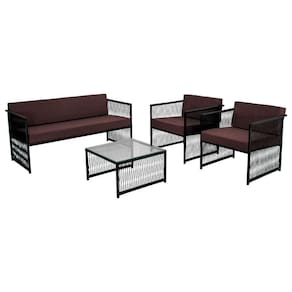 Os assentos e encostos das poltronas e da namoradeira sao estofados com material Impermeavel e espuma D28 o que proporciona uma sensacao de suavidade ao sentar-se, criando um ambiente acolhedor e relaxante. Ideal para areas internas ou externas, o Conjunto Santiago completa o ambiente com charme e funcionalidade.