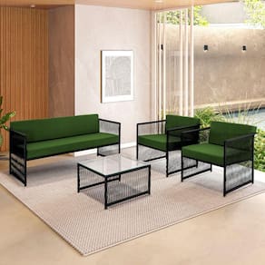 Os assentos e encostos das poltronas e da namoradeira sao estofados com material Impermeavel e espuma D28 o que proporciona uma sensacao de suavidade ao sentar-se, criando um ambiente acolhedor e relaxante. Ideal para areas internas ou externas, o Conjunto Santiago completa o ambiente com charme e funcionalidade.