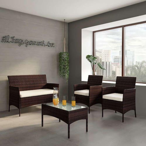 que tal o conjunto para Área externa edna?chamar os amigos para momentos de confraternização ou curtir bons dias de verão com a família é ótimo, ainda mais com o conjunto edna como companhia. completo para diferentes ocasiões, ele tem mesa para uma bandeja de petiscos ou outros objetos e assentos bem estruturados, que deixam o corpo super à vontade - ainda mais com o estofamento. juntando cores neutras, ele combina bem com todos os tipos de lar-style, do clássico ao moderno. legal, né?
