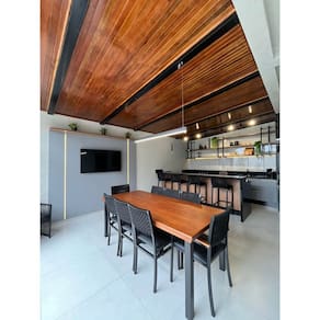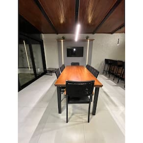 Madeira maciça (tampo), Metalon (estrutura), Corda Náutica (encosto), MDF (assento)Vendido e entregue por MOVEIS BOM DE PRECO