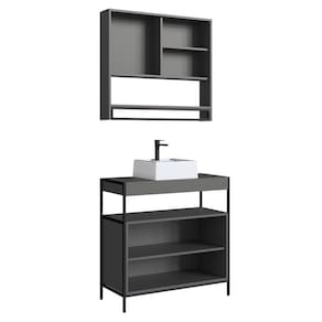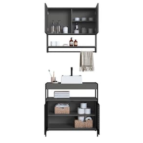 Produto: Conjunto para Banheiro | Tonalidade: Multicolorido | Material: Madeira | Tamanho do Móvel: Grande Cor: Grafite