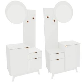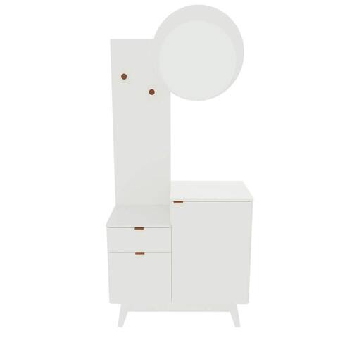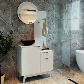 O Conjunto para Banheiro BN3680 possui estrutura em MDP 15mm e acabamento pintura UV. Produto pode ser montado tanto no lado direito como no esquerdo. Possui 1 prateleira que suportam 3kgs, 1 gaveta com corrediça metálica e que suporta 3kgs, 2 portas com dobradiças metálicas, puxadores metálicos, 2 suportes para toalhas cromado, 1 espelho redondo de 3mm com tamanho 45x45cm e 4 pés em PVC Branco. Produto suporta até 22kgs. Não necessita fixação na parede. Conteúdo da embalagem: móvel, ferragens e manual de montagem. A fixação das peças e/ou acessórios é feita por parafusos, cavilhas e minifix. Para uma limpeza mais efetiva, utilizar apenas pano macio umedecido e sabão neutro. Não utilizar produtos abrasivos. Garantia de 03 meses contra defeitos de fabricação. Medidas do produto (AxLxP): 183,4x80x40,3cm. Peso do produto: 29,95kgs.