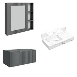 Conjunto Para Banheiro Bancada Em Porcelanato Com Cuba Esculpida, Armário e Espelheira Ripy 80cm Cinza