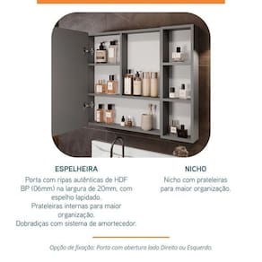 1x Espelheira para Banheiro Ripy 80cm Cinza