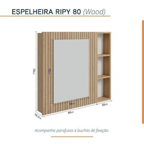 1x Espelheira para Banheiro Ripy 80cm Wood Largura: 80 cm Altura: 70 cm Peso: 14 kg Profundidade: 10,3 cm Necessita Montagem: Não
