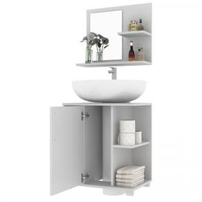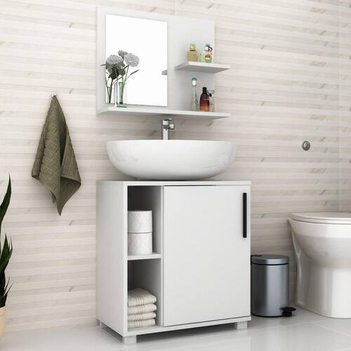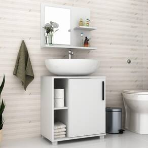Este belo conjunto foi projetado para deixar seu banheiro mais sofisticado e moderno, de uma maneira simples e prática. Sua estrutura é toda em MDP 15mm e possui acabamento em BP. Balcão possui 2 nichos, 1 porta com dobradiças metálicas e puxador em ABS. Armário aéreo 1 pequena prateleira na lateral e espelho de 3mm. Devido ao encaixe do balcão, o conjunto é ideal para banheiros que possuem pia em coluna, trazendo charme e modernidade ao ambiente.