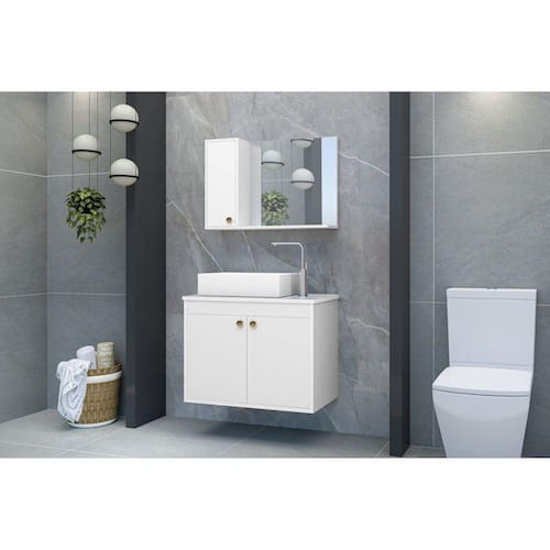Puxadores pontuais em ABS na cor cobre fosco, dando o toque final de sofisticação a esse lindo conjunto. Acabamento da Cuba: Acetinado Acabamento da Porta: Pintura UV Acompanha Cuba: Sim Acompanha Manual de Instalação: Sim Acompanha Parafusos Para Fixação Na Parede: Sim Ambiente Principal: Banheiro codigo_ean: 7909903617946 Cor: Branco Cor da Cuba: Branco Cor do Produto: Branco Cor Interna: Branco Escala de Brilho: Brilhante Escala de Brilho da Porta: Brilhante Furação para Cuba e Torneira: Sim Itens Inclusos: Gabinete, Cuba, Espelheira com Armário, Puxadores, Itens para fixação Linha ou Coleção: Conjunto Clean 60 com Cuba Manual de Montagem e Instalação: https://product-hub-prd.madeiramadeira.com.br/898755/documents/ab3a8a49-0eb1-40f5-86f0-8c171ecc2a8335manualinstalacaocasanova.pdf Material da Cuba: Mármore Sintético Material da Porta: MDF/MDP Material do Puxador da Porta: ABS Material Principal: MDF/MDP Medida da Cuba (C x L x P): 40 x 28 x 10 cm Necessita Montagem: Não Origem do Produto: Nacional Peso: 16,2 kg Possui Nichos: Não Possui Pés: Não Possui Portas: Sim Possui Prateleiras: Não Possui Recorte No Tampo Para Cuba: Não Possui Recorte No Tampo Para Misturador: Não Possui Sifão: Não Possui Tampo: Não Produto Montado: Sim Recomendações de Uso, Manutenção e Limpeza: Limpeza com pano úmido Resistente à Chuva: Não Suporta Até (kg): 10 kg Tipo de Dobradiça/Corrediça da Porta: Metálica Tipo de Móvel para o Banheiro: Gabinete de Banheiro Tipo de Porta: Basculante Tipo de Puxador da Porta: Externo Tipo do produto: Conjunto para Banheiro Válvula indicada: Válvula Padrão