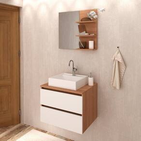 Conjunto Para Banheiro 03 Peças. Com design prático e funcional, estas peças ao ambiente toques de modernidade e elegância. Possuem estruta em MDP de 15mm, e acabamento em pintura UV/BP. Composto por 02 gavetas com corrediças metálicas, 03 prateleiras para deixar seus itens mais utilizados sempre a mão. Cuba em mármore sintético e acabamento Brilho Polido, esta Cuba já vai com furação para intalação da torneira (torneira não inclusa). O mármore sintético combina alta resistência ao impacto e baixa porosidade, proporcionando maior impermeabilidade a manchas, o que garante a resistência e vitalidade do produto. Este conjunto é uma ótima escolha para manter seus produtos de higiene e beleza sempre organizados. Estes produtos chegarão na sua casa separados em 03 volumes.