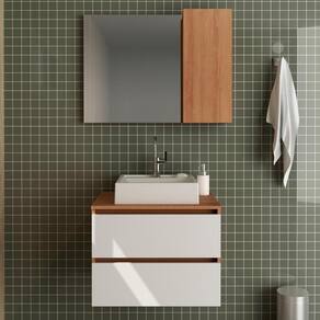 Conjunto Para Banheiro 03 Peças. Com design prático e funcional, estas peças ao ambiente toques de modernidade e elegância. Possuem estruta em MDP de 15mm, e acabamento em pintura UV/BP. Gabinete com 02 gavetas com corrediças metálicas, espelheira com 01 porta na lateral com dobradiças metálicas, 3 nichos internos para tornar mais pratica sua rotina, conta com espelho ja fixado no painel. Cuba em mármore sintético e acabamento Brilho Polido, esta Cuba já vai com furação para intalação da torneira (torneira não inclusa). O mármore sintético combina alta resistência ao impacto e baixa porosidade, proporcionando maior impermeabilidade a manchas, o que garante a resistência e vitalidade do produto. Este conjunto é uma ótima escolha para manter seus produtos de higiene e beleza sempre organizados. Estes produtos chegarão na sua casa separados em 03 volumes.