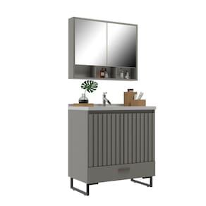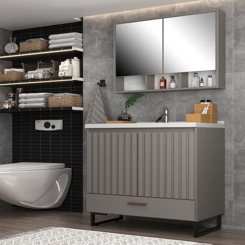 Conjunto para Banheiro com Espelheira Nevada Cimento - Cinza