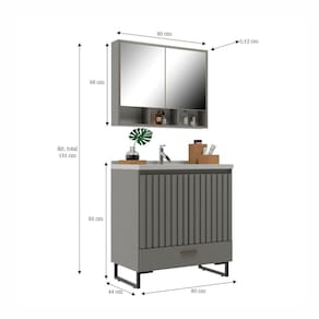 O conjunto gabinete para banheiro nevada de 80cm, composto por uma espelheira grande com duas portas de abrir, composta por um nicho na parte inferior e um amplo espaço interno. Um gabinete super espaçoso, com uma gaveta grande e duas portas com detalhe em ripado, tem dobradiças com amortecimento que fecham as portas suavemente, sem bater e fazer barulho. Design único e características que garantem melhor e maior durabilidade ao produto, o detalhe em ripado dá um charme a mais no seu conjunto, uma gaveta inferior com trilhos telescópicos que deslizam ao abrir e fechar, e charme especial, é o pé, sendo o tubo metálico.