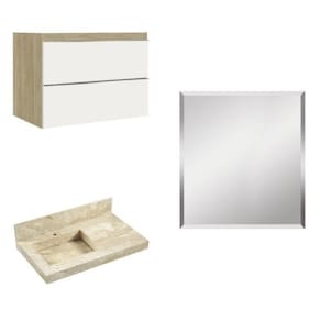 Gabinete fabricado em MDF e MDP BP (15mm), com puxadores em alumínio anodizado, caixaria estruturada com cantoneiras metálicas, gavetas com corrediças telescópicas proporcionando abertura total, gaveta com higiênico organizador dental (removível e lavável), uma gaveta interna com divisores e manta anti-derrapante protegendo fundo da mesma. Espelho Cristal 3mm com acabamento bisotê, estruturado em painel de MDF. Lavatório com Cuba Esculpida fabricado em porcelanato técnico polido com frontão frontal e lateral. *Não acompanha torneiras e acessórios. Altura do Conjunto: 80 cm Ambiente: null Ambiente Principal: Banheiro Cor: Branco/Wood/Travertino Informação Complementar: 1x Espelho para Banheiro 80x80cm Acabamento em Bisotê Blu EspelhadoLargura: 80 cmAltura: 80 cmPeso: 9,6 kgProfundidade: 1,2 cmNecessita Montagem: Não1x Lavatório para Banheiro em Porcelanato 80cm Com Cuba Esculpida Lavatórios TravertinoLargura: 80Altura: 22.2Peso: 17.935Profundidade: 48.5Necessita Montagem: Não1x Gabinete Suspenso Para Banheiro 77cm 2 Gavetas Sem Lavatório Blu Móveis Wood/BrancoLargura: 77 cmAltura: 60 cmPeso: 28,6 kgProfundidade: 46,5 cmNecessita Montagem: Não Possui Portas: Não
