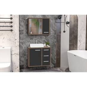 Composto por Espelheira com armário com porta, prateleira interna e espelho, e Gabinete com duas portas, três gavetas com corrediças telescópicas e cuba de apoio / sobrepor inclusa.