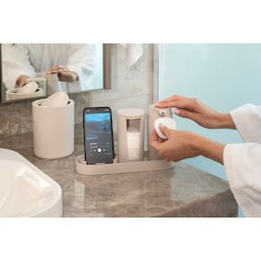 Porta Sabonete Líquido: O porta-sabonete líquido é a solução perfeita para manter o seu sabonete sempre à mão. Com dimensões de 6,6 cm (comprimento) x 7,9 cm (largura) x 14,6 cm (altura), ele se encaixa perfeitamente em qualquer espaço e contribui para manter o banheiro organizado.