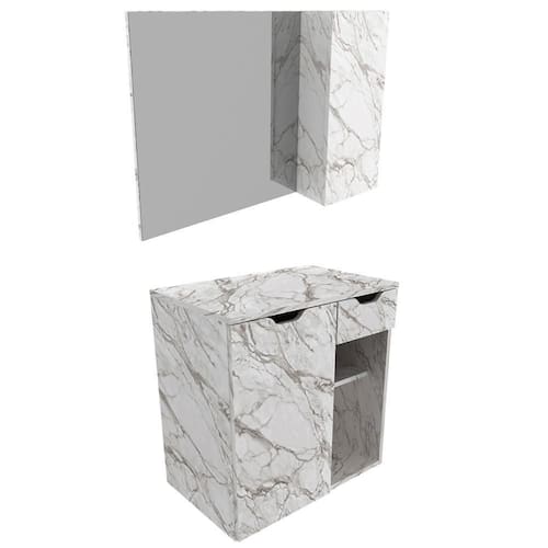 Conjunto Para Banheiro 02 Peças. Com design prático e funcional, estas peças ao ambiente toques de modernidade e elegância. Possuem estruta em MDP de 15mm, e acabamento em pintura UV/BP. Composto por espelheira com 01 porta na lateral do espelho com dobradiças metálicas e 3 nichos internos, espelho ja fixado no painel, o gabinete conta 01 porta com dobradiças metálicas, 02 nichos e 01 gaveta com corrediças metálicas para tornar sua rotina mais prática, ideal para cuba de apoio (cuba não inclusa). Este conjunto é uma ótima escolha para manter seus produtos de higiene e beleza sempre organizados. Estes produtos chegarão na sua casa separados em 02 volumes.