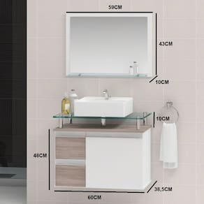 PRODUTO TOTALMENTE RESISTENTE A ÚMIDADE E RESPINGOS DE ÁGUA! Acabamento da Cuba: Alto Brilho Acabamento da Gaveta: Pintura UV Acabamento da Porta: Pintura UV Acompanha Cuba: Sim Acompanha Tampo: Sim Ambiente Principal: Banheiro Cor: Ciliegio Cor da Cuba: Branco Cor do Produto: Ciliegio Cor Interna: Branco Escala de Brilho: Brilhante Escala de Brilho da Gaveta: Brilhante Escala de Brilho da Porta: Brilhante Espessura do Espelho: 3 Formato do Espelho: Retangular Furação para Cuba e Torneira: Sim Gaveta com Chave: Não Itens Inclusos: 1 Conjunto para Banheiro, Kit Ferragens e Manual de Montagem Linha ou Coleção: Diamante Manual de Montagem e Instalação: https://product-hub-prd.madeiramadeira.com.br/825386/documents/33e90ecd-e652-41fb-80f2-91ee7de36d011169895contarinimoveis.pdf Material da Cuba: Mármore Sintético Material da Gaveta: MDF Material da Porta: MDF Material do Tampo: Vidro Material Principal: MDF Medida da Cuba (C x L x P): 33,5 x 10,5 x 33,5cm Medida da Espelheira (A x L x P): 43 x 59 x 10cm Medida do Gabinete (A x L x P): 48 x 60 x 38,5cm Necessita Montagem: Não Origem do Produto: Nacional Peso: 23 Peso Máximo por Gaveta: 5 Possui Espelheira: Sim Possui Gabinete: Sim Possui Gavetas: 02 Possui iluminação: Não Possui Pés: Suspenso Possui Portas: 01 Possui Rodízio: Não Recomendações de Uso, Manutenção e Limpeza: A limpeza deve ser feita com pano úmido e liso. Não deve ser utilidade materiais ásperos ou jatos de água diretamente sob o produto. Suporta Até (kg): 15 Tamanho do Espelho (A x L): 50cm x 35cm Tipo de Corrediça da Gaveta: Metálica Simples Tipo de Dobradiça/Corrediça da Porta: Metálica Tipo de Gabinete: Gabinete Suspenso Tipo de Porta: Bater Tipo de Puxador da Gaveta: Embutido Tipo de Puxador da Porta: Embutido Marca: Contarini Ean: 7909903403266