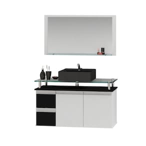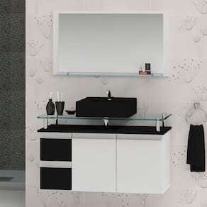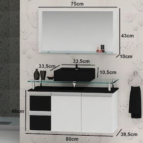 PRODUTO TOTALMENTE RESISTENTE A ÚMIDADE E RESPINGOS DE ÁGUA! Acabamento da Cuba: Alto Brilho Acabamento da Gaveta: Pintura UV Acabamento da Porta: Pintura UV Acompanha Cuba: Sim Acompanha Tampo: Sim Ambiente Principal: Banheiro Cor: Preto Cor da Cuba: Preto Cor do Produto: Preto Cor Interna: Branco Escala de Brilho: Brilhante Escala de Brilho da Gaveta: Brilhante Escala de Brilho da Porta: Brilhante Espessura do Espelho: 3 Formato do Espelho: Retangular Furação para Cuba e Torneira: Sim Gaveta com Chave: Não Itens Inclusos: 1 Conjunto para Banheiro, Kit Ferragens e Manual de Montagem Linha ou Coleção: Diamante Manual de Montagem e Instalação: https://product-hub-prd.madeiramadeira.com.br/825412/documents/a7227ca5-93b-480c-8629-ee25e9a37d951170096contarinimoveis.pdf Material da Cuba: Mármore Sintético Material da Gaveta: MDF Material da Porta: MDF Material do Tampo: Vidro Material Principal: MDF Medida da Cuba (C x L x P): 33,5 x 10,5 x 33,5cm Medida da Espelheira (A x L x P): 43 x 75 x 10cm Medida do Gabinete (A x L x P): 48 x 80 x 38,5cm Necessita Montagem: Não Origem do Produto: Nacional Peso: 27 Peso Máximo por Gaveta: 5 Possui Espelheira: Sim Possui Gabinete: Sim Possui Gavetas: 02 Possui iluminação: Não Possui Pés: Suspenso Possui Portas: 02 Possui Rodízio: Não Recomendações de Uso, Manutenção e Limpeza: A limpeza deve ser feita com pano úmido e liso. Não deve ser utilidade materiais ásperos ou jatos de água diretamente sob o produto. Suporta Até (kg): 15 Tamanho do Espelho (A x L): 70cm x 35cm Tipo de Corrediça da Gaveta: Metálica Simples Tipo de Dobradiça/Corrediça da Porta: Metálica Tipo de Gabinete: Gabinete Suspenso Tipo de Porta: Bater Tipo de Puxador da Gaveta: Embutido Tipo de Puxador da Porta: Embutido Marca: Contarini Ean: 7909903403280