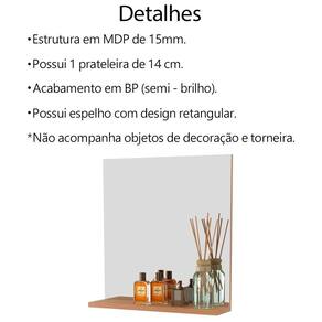 Conjunto Para Banheiro Gabinete Com Cuba e Espelheira, ideal para inovar o seu banheiro com toque luxuoso e ao mesmo tempo refinado. Gabinete e Espelho com estrutura em MDP de 15mm, proporcionando maior durabilidade e resistência a peça, contando com acabamento revestido em BP (semi - brilho). Composto por 1 porta com dobradiças metálicas, 1 prateleira com amplo espaço para armazenar diversos itens e 4 pés retro palito. Suportando 10kg o tampo e 3kg a prateleira. Espelho com design retangular e 1 prateleira com amplo espaço para armazenar itens, prateleira suporta 3kg. Cuba produzida em mármore sintético, contando com acabamento em brilho polido. Suportando até 4 litros e 10kg. Possui furação para instalação de torneira (torneira não inclusa). Perfeito para deixar seu ambiente produtivo, proporcionando uma ambientação elegante e moderna. Estes móveis chegarão na sua casa separados em 3 volumes.