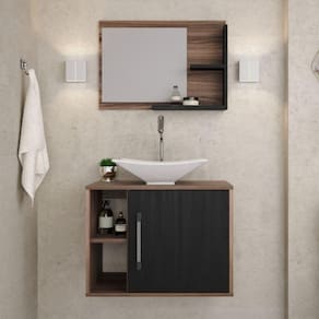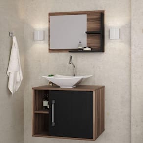 Itens Inclusos: 1 Gabinete com Cuba, 1 Espelheira, kit de ferragens e manual de montagem