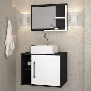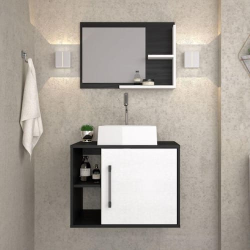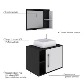 Conjunto para Banheiro Gabinete com Cuba Quadrada Q32 e Espelheira Laura 600 Yescasa Preto Ônix/Branco Chess