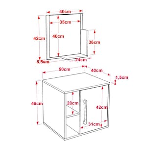 Medida da Espelheira (A x L x P): 42cm x 40cm x 10cm