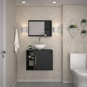 Itens Inclusos: 1 Gabinete com Cuba, 1 Espelheira, kit de ferragens e manual de montagem