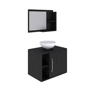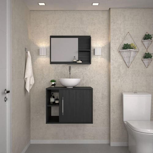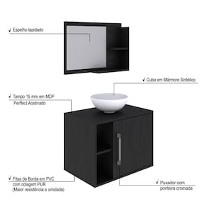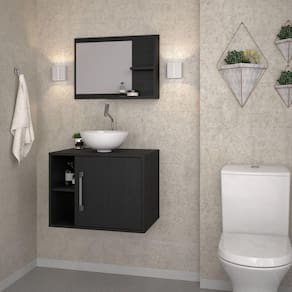 Conjunto para Banheiro Gabinete com Cuba Redonda R30 e Espelheira Laura 600 Yescasa Preto Onix
