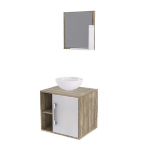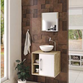Conjunto para Banheiro Gabinete com Cuba Redonda R30 e Espelheira Soft 500W Carvalho/Branco Chess - Marrom