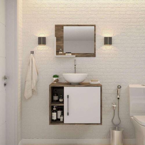 Que tal o Conjunto de Banheiro Soft?Todo mundo ama um banheiro organizado e bem decorado, né? Para te ajudar a compor esse cômodo tão importante da casa, conte com o Conjunto Soft! Perfeito para otimizar sua rotina, ele possui gabinete com espaço de armazenamento, em que seus produtos de higiene e beleza ficarão bem acomodados e arrumados, enquanto a espelheira será a grande aliada para você dar uma conferida no look do dia. E, como uma boa decoração está ligada ao design dos móveis, as duas peças possuem estrutura clássica e coloração tradicional, tudo para dar um ar elegante ao ambiente. Ah, o conjunto já acompanha cuba, o que o torna ainda mais completo, já que é só montar tudo, posicionar bem no espaço e aproveitar a praticidade do seu dia a dia. É ou não é perfeito para o seu lar-style?