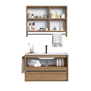1x Gabinete de Banheiro Suspenso 80cm com 1 Toalheiro 1 Porta 1 Gaveta Bh8030 com Lavatorio Mel Largura: 80 cm Altura: 48 cm Peso: 21,2 kg Profundidade: 38 cm Necessita Montagem: Sim