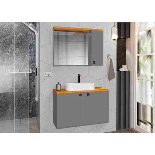 MODELO : MADRI Acompanha : Gabinete + Cuba + Espelheira com espelho Modelo moderno, com puxador de alumínio.