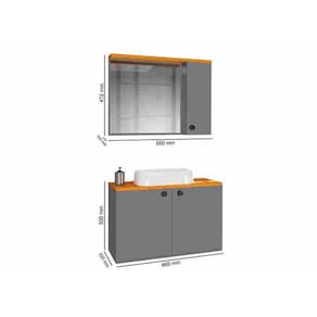 KIT BANHEIRO COMPLETO 60CM - GABINETE + CUBA + ESPELHEIRA