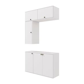 Acabamento: Pintura Brilho | Cor: Branco | Dobradiça: Com Amortecimento / Sem Amortecimento | Garantia: 3 meses para defeito de fabricação | Matéria-prima: MDF | Peso suportado por cada prateleira: 7 kg | Puxadores: Metálicos | Quantidade de portas: 1 / 3 | Quantidade de prateleiras: 2 | Sistema de montagem: Parafuso Philips | Tipo de porta: Bater