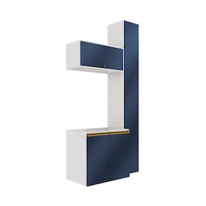 Acabamento: Pintura Brilho / Pintura Fosco | Cor: Branco/Azul Profundo | Dobradiça: Com Amortecimento / Sem Amortecimento | Garantia: 3 meses para defeito de fabricação | Matéria-prima: MDF | Peso suportado por cada prateleira: 7 kg | Puxadores: Alumínio / Metálicos | Quantidade de portas: 1 / 2 | Quantidade de prateleiras: 1 | Sistema de montagem: Parafuso Philips | Tipo de porta: Bater | Requer montagem: Sim