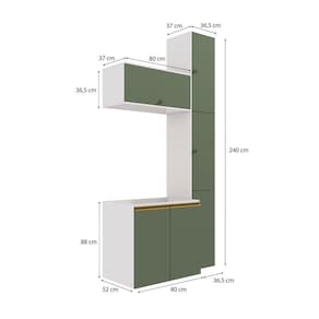 Acabamento: Pintura Brilho / Pintura Fosco | Cor: Branco/Verde Oliva | Dobradiça: Com Amortecimento / Sem Amortecimento | Garantia: 3 meses para defeito de fabricação | Matéria-prima: MDF | Peso suportado por cada prateleira: 7 kg | Puxadores: Alumínio / Metálicos | Quantidade de portas: 1 / 2 | Quantidade de prateleiras: 1 | Sistema de montagem: Parafuso Philips | Tipo de porta: Bater
