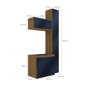 Acabamento: Pintura Fosco / Pintura Touch | Cor: Nogueira/Azul Profundo | Dobradiça: Com Amortecimento / Sem Amortecimento | Garantia: 3 meses para defeito de fabricação | Matéria-prima: MDF | Peso suportado por cada prateleira: 7 kg | Puxadores: Alumínio / Metálicos | Quantidade de portas: 1 / 2 | Quantidade de prateleiras: 1 | Sistema de montagem: Parafuso Philips | Tipo de porta: Bater