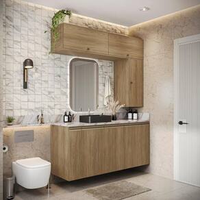 O máximo de beleza e espaço para seu banheiro aliado a qualidade do 100% MDF, só com a Celeste da Kappesberg. Ideal para quem procura por muito espaço, ele encaixa perfeitamente em ambientes maiores, garantindo organização e praticidade no seu dia a dia. E com até sete camadas de pintura, sua cor nogueira com acabamento touch, é ideal para quem não abre mão de sofisticação e aconchego em cada detalhe, remetendo aos tons da natureza e tornando seu ambiente ainda mais especial. Com sete módulos, o combo CB1281 conta com divisórias perfeitas para um banheiro sempre organizado e funcional. Os módulos de nicho possuem corrediças telescópicas, que facilitam o armazenamento de itens menores e acessórios, além de mais praticidade no manuseio. Enquanto as portas, com amortecimento, garantem um fechamento suave, sem ruídos e mais durabilidade, e com diversas prateleiras, será fácil organizar toalhas, cestos e demais itens na parte interna. A beleza dos módulos se completa com os puxadores, metálicos na cor dourada e com modelos diferentes nos balcões e aéreos, transformando seu projeto com estilo. Aposte na Celeste e monte seu banheiro com toda a beleza e praticidade que a Kappesberg oferece.
