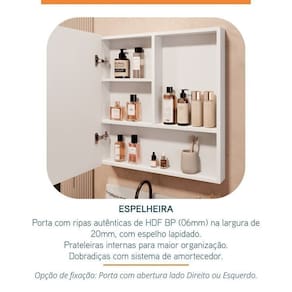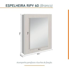 1x Espelheira para Banheiro Ripy 60cm Branco Largura: 60 cm Altura: 70 cm Peso: 12 kg Profundidade: 10,3 cm Necessita Montagem: Não