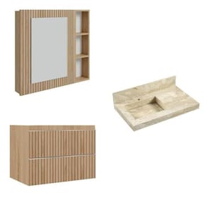 O Conjunto é composto por GABINETE + ESPELHEIRA + LAVATÓRIO. GABINETE fabricado em MDP BP (15mm), com ripas autênticas de HDF BP (06mm), na largura de 20mm. Puxadores de alumínio anodizado; caixaria estruturada com cantoneiras metálicas; gavetas com corrediças telescópicas proporcionando abertura total das mesmas; gaveta com divisores e higiênico organizador dental (removível e lavável); e gaveta interna com manta anti-derrapante, protegendo o fundo da mesma. ESPELHEIRA possuí espelho de 550 X 390 X 03 mm com acabamento lapidado, estruturado em porta com ripas autênticas de HDF BP (06mm). Possui prateleiras internas, porta com dobradiças slow, com sistema de amortecedor e nicho com prateleiras ao lado, para maior organização. LAVATÓRIO com cuba esculpida, fabricado em porcelanato, com baix Altura do Conjunto: 70 cm Ambiente: null Ambiente Principal: Banheiro Cor: Wood/Travertino Informação Complementar: 1x Lavatório em Porcelanato para Banheiro 80cm com Cuba Esculpida Travertino Largura: 80 Altura: 22.2 Peso: 17.935 Profundidade: 48.5 Necessita Montagem: Não